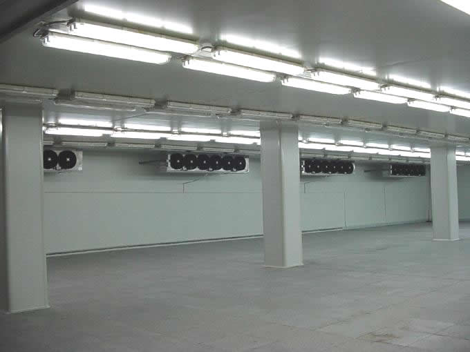 根據當地氣候環境的特點,確定庫體結構采用鋼結構還是磚混結構。一般情況下,冷藏溫度與環境溫度相差在±;10℃時,可以采用鋼結構加聚氨酯保溫板;溫差更大時,建議采用磚混結構加聚氨酯保溫板。