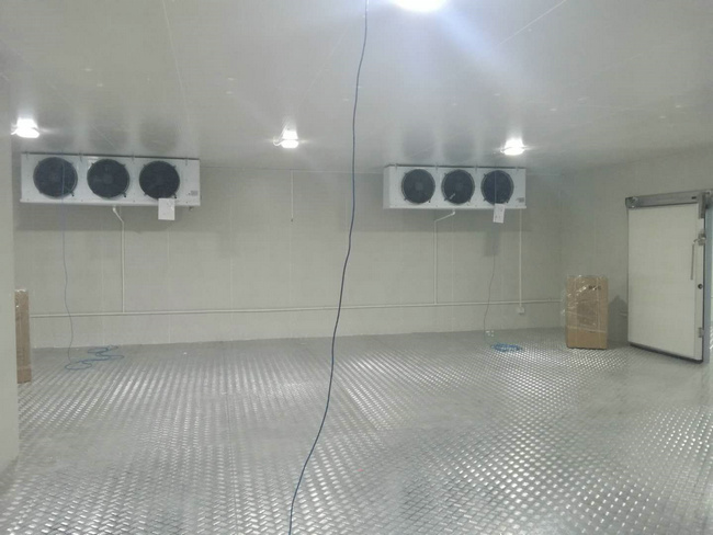 冷風機的安裝位置z好在空氣循環(huán)z好的位置。冷風機應該與庫板之間保持一定的距離,一般要大于冷風機的厚度。