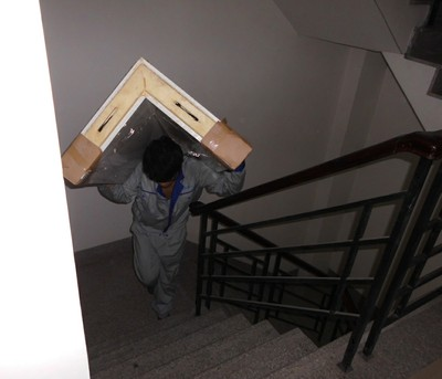 此醫藥冷庫建在一所商務寫字樓13層,由于電梯小的原因,辛苦冷庫安裝師傅們,將庫板一塊塊扛上樓去,