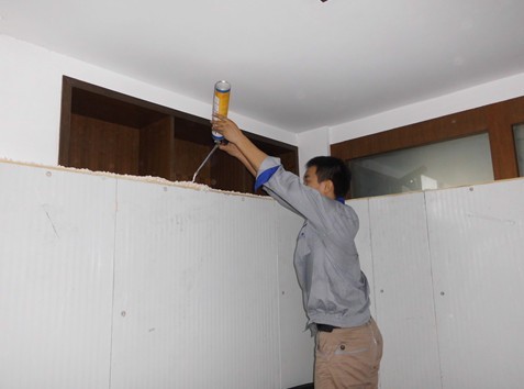 在拼裝每一塊冷庫板,都不可忽視細節,必須打上發泡劑;