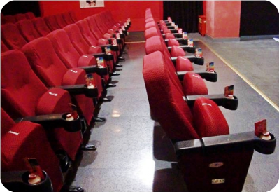 在電影院的座椅上的養樂多和宣傳卡