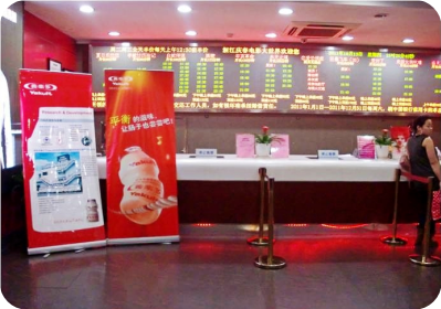 售票處的醒目的養樂多易拉寶